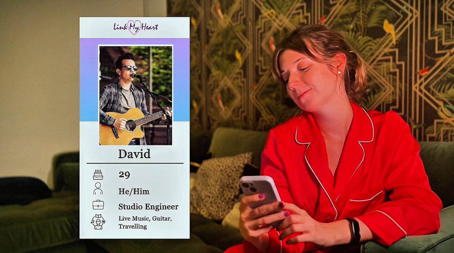 In other news - I’ve started submitting my co-written short film Link My Heart to film festivals! This project has been simmering away behind the scenes for the last handful of years and I can’t believe we can finally send it out into the world. I’m not sure what our chances are for being accepted, but I’ve tried to shortlist festivals that would be receptive to our quirky, low-budget style. It was pretty fun picking a few screenshots to showcase the movie - here is a sneak peek 👀: